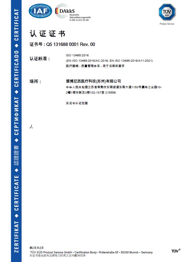 未来,雅博尼西医疗以此认证为新起点,持续优化和贯彻国际标准化的质量管理体系,进一步提升研发创新效率与生产精益化水平,在全球医疗产业布局中迈向更高质量的发展新阶段。